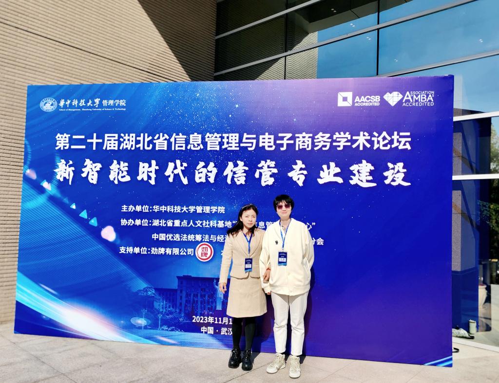2023年11月19日,beat365亚洲体育官方网站电子商务教研室主任肖晓、大数据管理与应用教研室主任卢红霞受邀参加华中科技大学主办,湖北省重点人文社科基地“现代信息管理研究中心”、中国优选法统筹法与经济数学研究会计算机模拟分会协办的第二十届湖北省信息管理与电子商务学术论坛,此次论坛聚焦于“新智能时代的信管专业建设”,与会专家们就一流专业建设、人才培养、教学创新和科学研究等议题展开了研讨和交流。