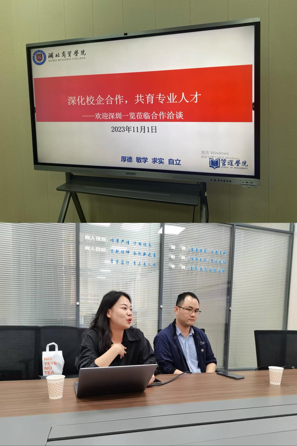 11月1日,深圳市一览网络股份有限公司武汉分公司总经理助理张天宇、行业负责人魏华龙来公司洽谈校企合作事宜,beat365亚洲体育官方网站经理严良、工商管理教研室饶欣主任、专职教师邹莹、庾雪、雷燕参加了洽谈会。