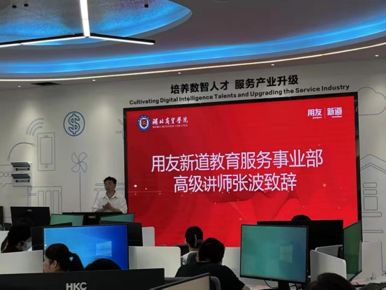 7月3日上午9点,beat365产业大楼数智商科学习中心满座一堂,beat365亚洲体育官方网站联合用友新道科技公司组织的用友BIP产业公司软件实验教学培训正式启动。beat365亚洲体育官方网站严良经理、用友新道公司领导及高级培训讲师先后致辞,为本次培训拉开序幕。