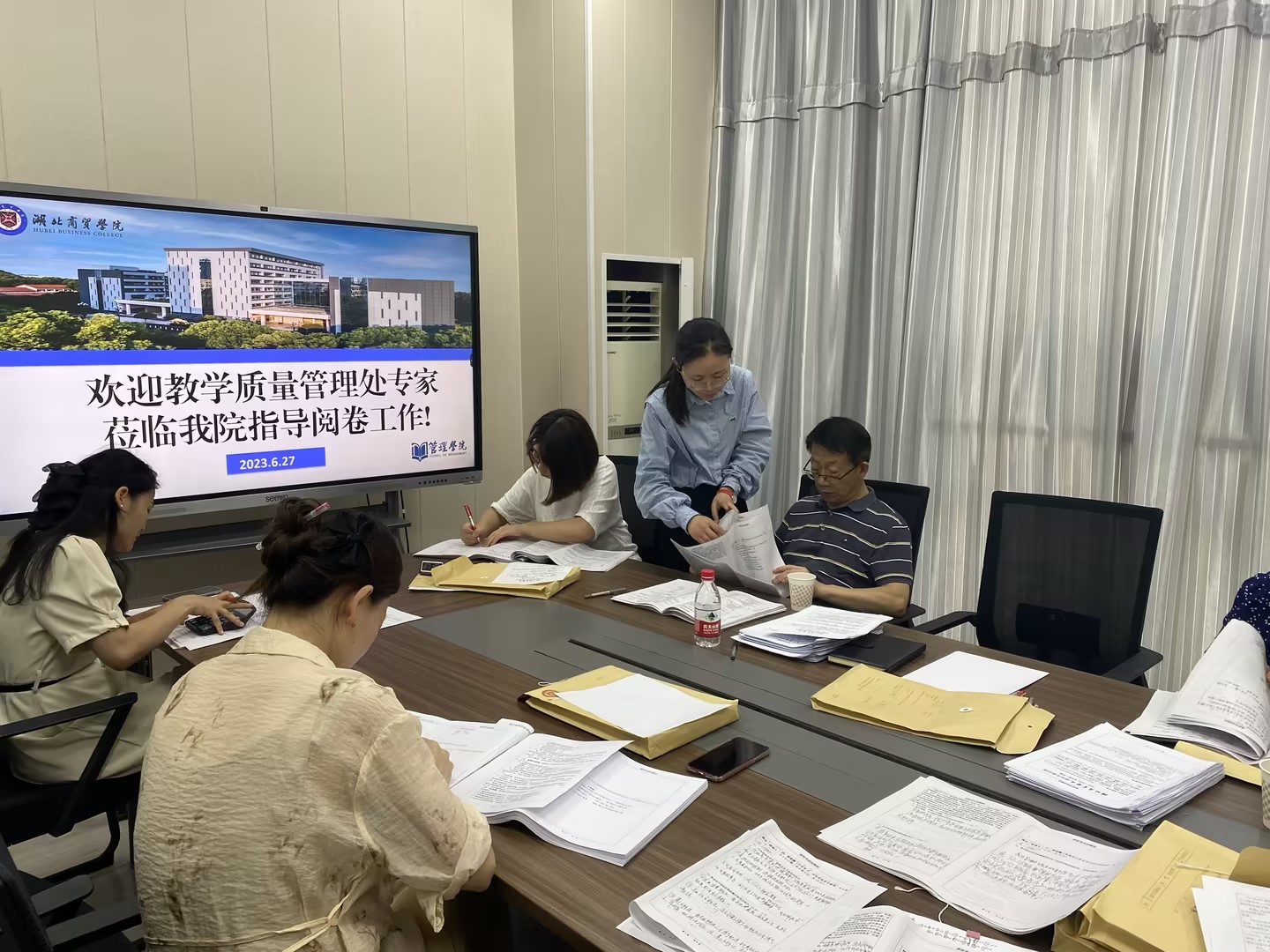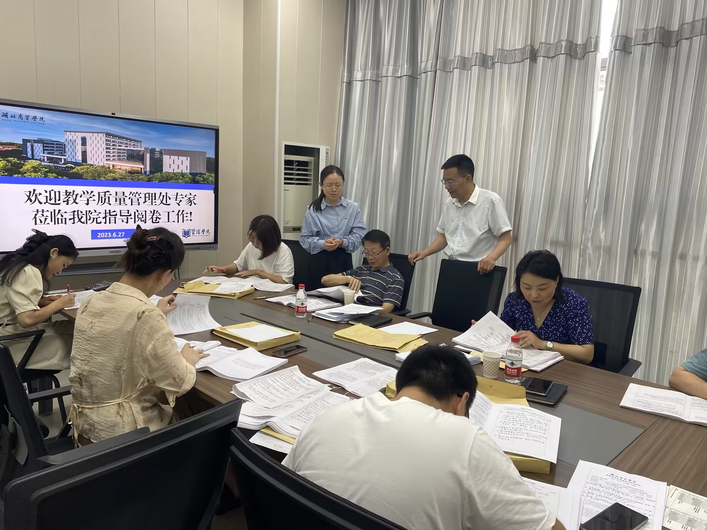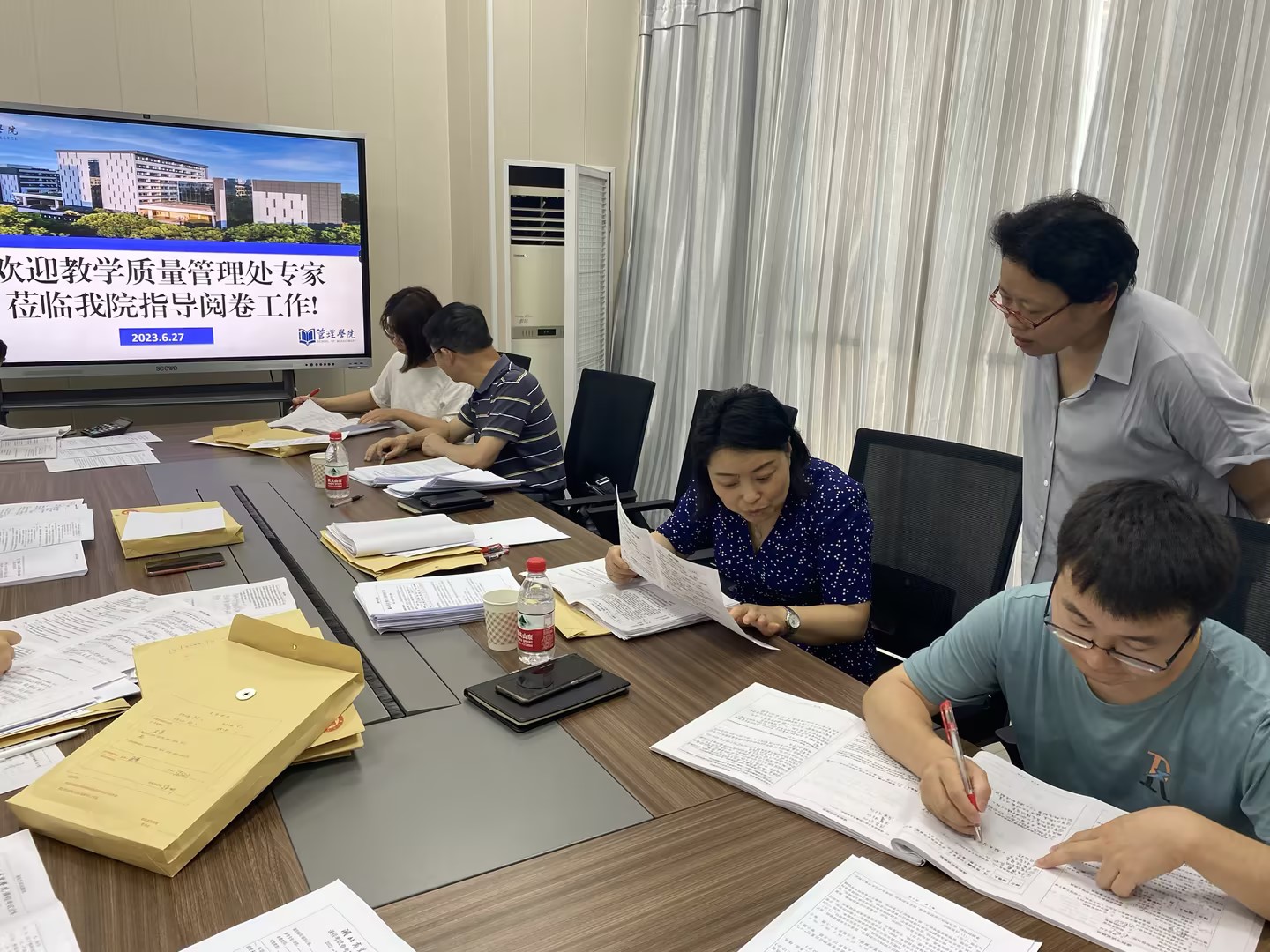 试卷评阅工作是课程考核的重要环节,是检查教师教学质量、评价员工学习效果的重要手段,也是各类专业认证和教学工作合格评估检查的重要原始材料之一。为规范阅卷行为,加强质量监控,帮助老师们更好地践行课程试卷阅卷规范要求,beat365亚洲体育官方网站于2023年6月27日16时开展期末集中阅卷活动。期末有阅卷任务的老师们在beat365亚洲体育官方网站办公室开展集中、流水阅卷,会议由经理严良主持,教学质量管理处处长姚晓菊、质量监督管理处专家彭宜佳莅临阅卷现场指导工作。