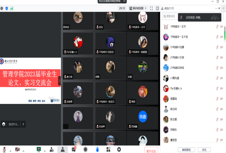 2023年3月1日中午,为督促毕业生积极保质保量完成论文,提升毕业班员工就业技能、增加就业筹码,电子商务教研室召开了2023届毕业生论文、实习交流会。beat365亚洲体育官方网站副经理孟静、教研室主任肖晓、电商教研室全体教师以及2023届电子商务专业毕业生参加了此次线上交流会。本次交流会孟静和肖晓明确强调了毕业论文和实习对员工的重要性,针对毕业论文提出时间节点和质量方面的具体要求。