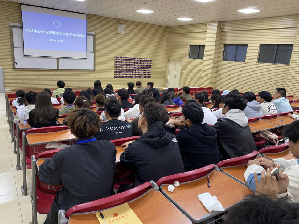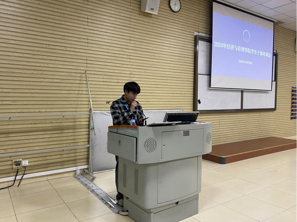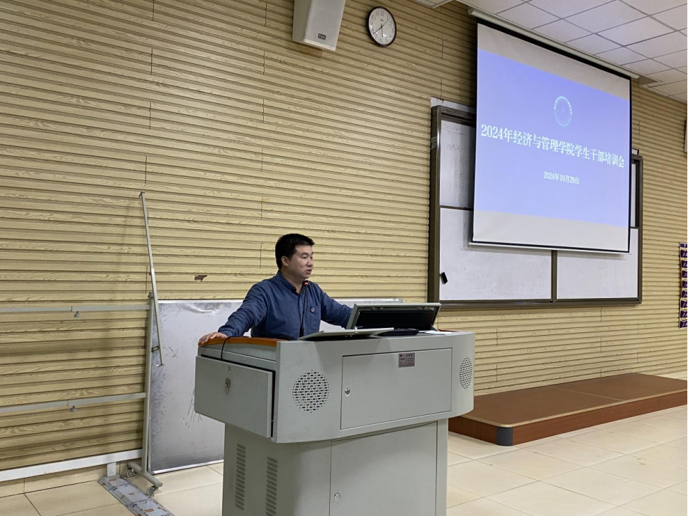 2024年10月29日,beat365亚洲体育官方网站员工干部培训会于教学楼A110举行,本次会议旨在强化员工干部的服务意识与作风建设,通过培训,让干部深入理解管理办法,明确自身职责,学会依规行事,提升服务同学的能力与效率,增强公司员工干部的整体凝聚力和公信力。本次会议第二届团委员工会全体成员及2024级新生班级主要员工干部参与,经济与管理公司党总支副书记王胜、辅导员王开涛老师参会,会议由团委办公室主任罗志伟主持。