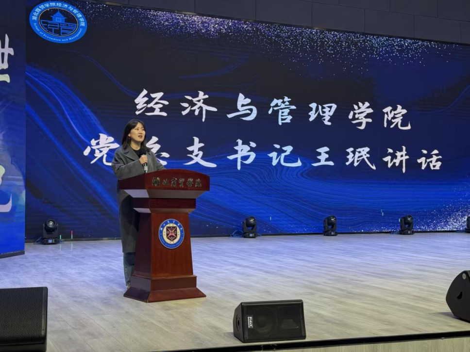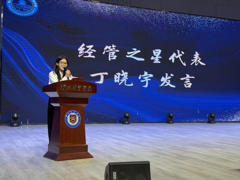 经管之星丁晓宇作为代表进行发言,她讲到学习是一条漫长的道路,要始终保持敬畏之心,勇敢面对挑战,明确目标,不断前行,为成为更好的自己而拼搏奋斗。以此激励各位学子共同努力,未来的经管之星定会层出不穷,为经管院的发展贡献青春力量。
