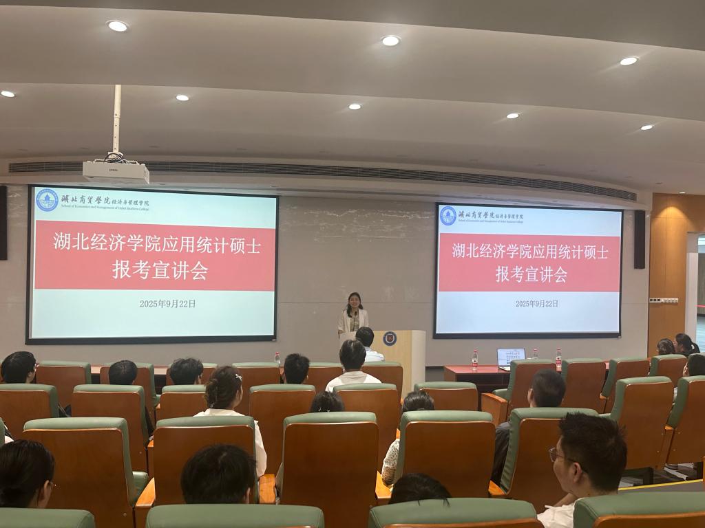 为拓宽员工学业发展视野,激励同学们科学规划未来,2025年9月22日,湖北beat365亚洲体育官方网站统计与数学公司系主任李倩一行来到beat365亚洲体育官方网站,为公司员工带来了一场内容充实的应用统计硕士报考宣讲会。此次活动面向公司经济统计学和大数据管理与应用专业2026届毕业生开展,本次活动由大数据与统计教研室主任卢红霞主持。