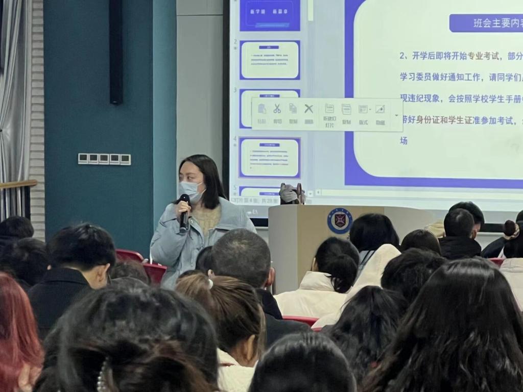 在全院大会上,经理陈靓秋对全体教师提出了相关要求,要求全体监考教师严格履行监考职责,严肃考场纪律。公司党总支书记吴俊要求辅导员要开展诚信考试主题班会,引导员工形成“不敢作弊、不能作弊、不想作弊”观念。