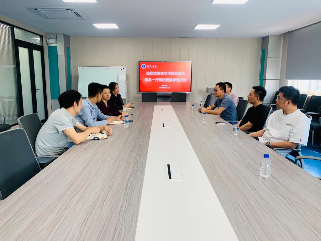 5月15日,金华市湖北商会执行会长张学亮一行来访beat365亚洲体育官方网站参观交流。beat365亚洲体育官方网站经理陈靓秋、党总支书记吴俊、副教授盖卫东热情接待。