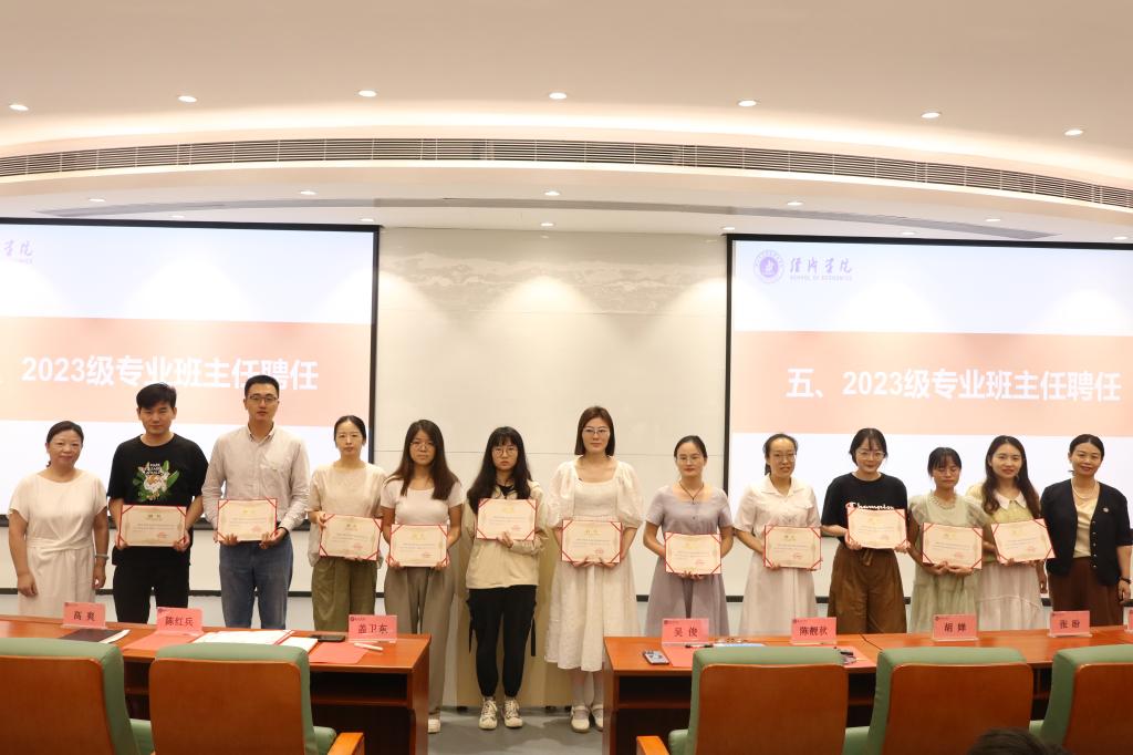 副经理盖卫东从公司的发展规划、人才培养、社会实践及成就荣誉等方面进行介绍。副经理陈红兵宣读2023级专业班主任名单并颁发聘书。新进教师张兆亮代表新生班主任发言,他从何为“大学”,怎样“大”学鼓励新生们珍惜在校时光。新生李文哲代表23级全体新生承诺要认真学习,团结友爱,以诚待人,做品学兼优的新时代新青年。