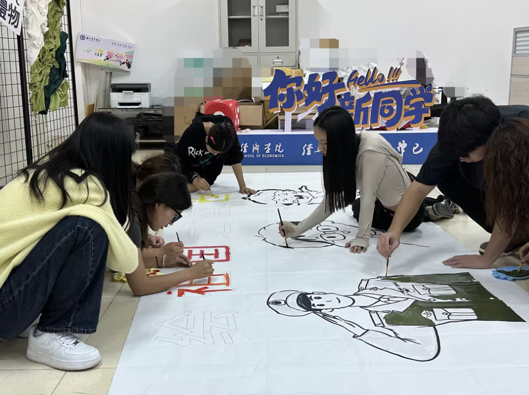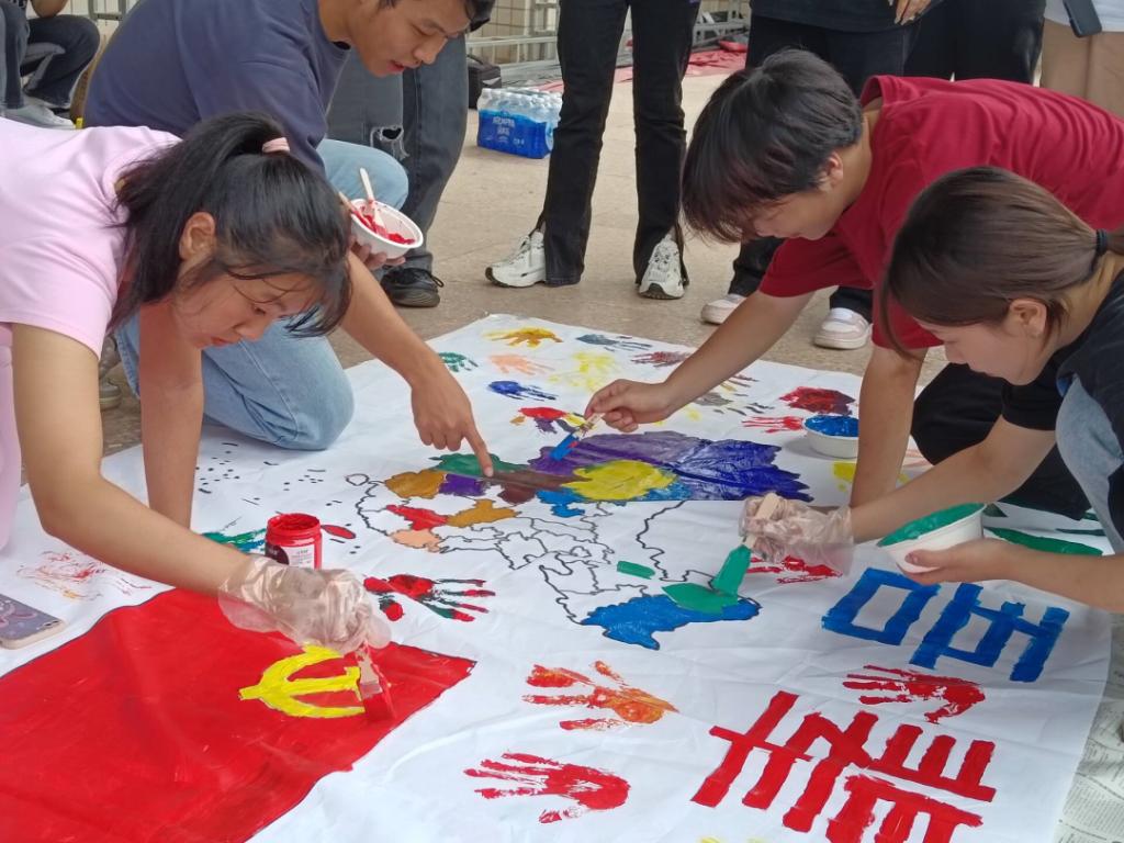23财税专一班的刘笑言同学激动的说:“大家齐心协力完成这幅献给祖国的画卷满满的成就感和自豪感油然而生!”