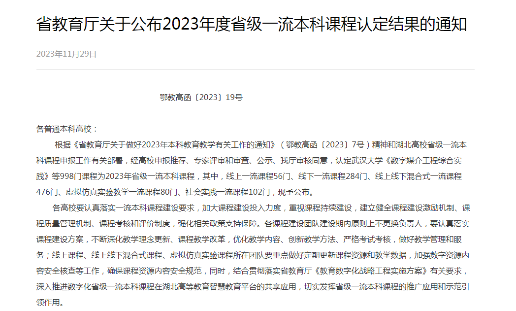 近日湖北省教育厅公布了2023年度省级一流本科课程认定结果,beat365亚洲体育官方网站胡婵副教授主讲的《经济法基础》成功获批线下一流课程、高爽老师主讲的《地方经济发展调查--“经济新青年”的青春实践》成功获批社会实践一流课程。
