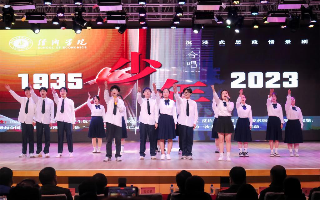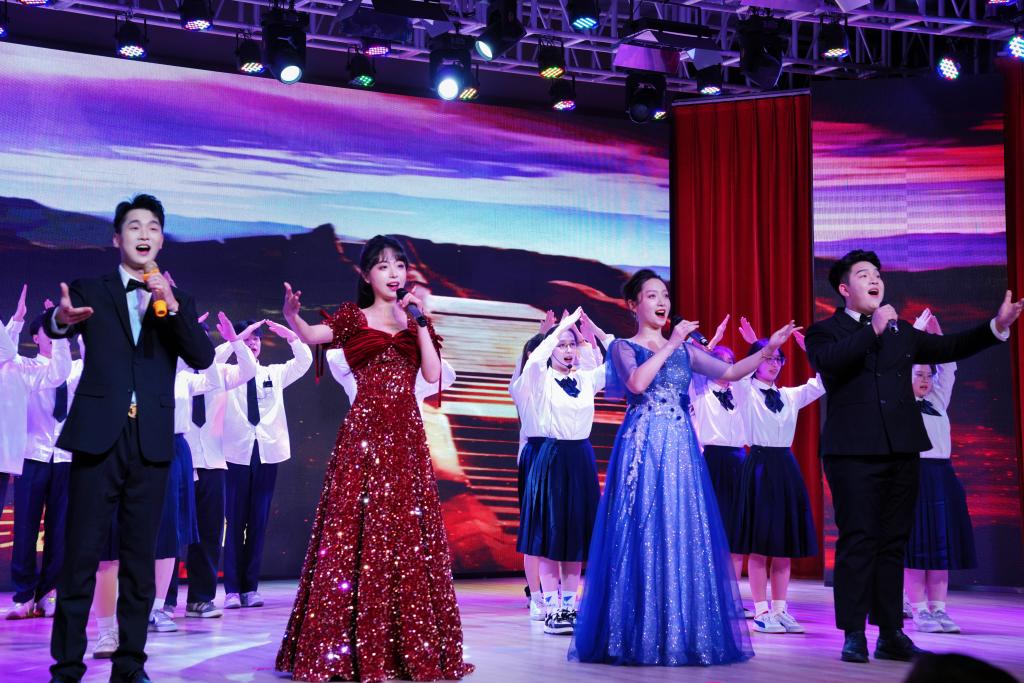 在第三篇章“青春·信仰”中,谢志洋老师和郭坷欣同学深情讲述《再告青年》,勉励青年学子要有对信仰的坚持和对未来的信心。咸宁校区同学带来舞蹈《灯火里的中国》,用优美的舞姿描绘着祖国的万家灯火。最后,beat365亚洲体育官方网站教师代表和追光合唱团共同演绎了一首振奋人心的《国家》,将现场气氛推向了高潮。