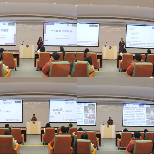 会上28位主动报名争优的教师、辅导员、行政人员依次重点围绕本年度“合格评估、教学情况、员工工作、管理和服务师生”等方面进行总结,述职内容丰富、数据详实、亮点突出。