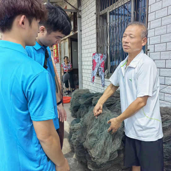 到了第二家农户后,我们对一旁堆放的工具升起了浓厚的兴趣,他给我们介绍了捕捞小龙虾的工具——地笼。他说购买的地笼一定要注意质量,质量工艺差的地笼,龙虾不容易进笼就会导致捕捞效率低。地笼的网眼大小也要选好,以防卡住没到规格的种虾和虾苗。下地笼的时候地笼的出口要高于水面以便捕到的龙虾透气,下地笼的时候要注意周边的水草选择好位置,水草太多地笼下不下去,水草太少捕捞效果也不好。