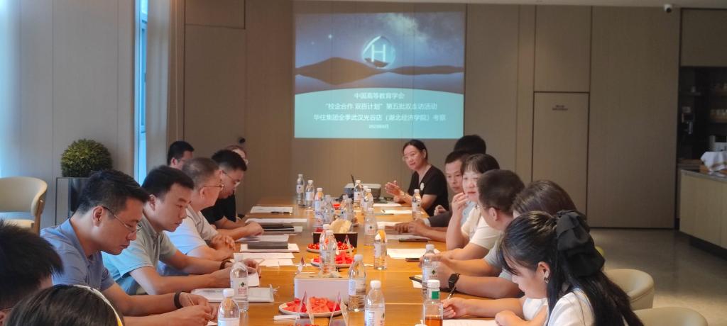 2023年8月3日,中国高等教育学会“校企合作 双百计划”第五批双走访活动在华住集团全季酒店(武汉光谷湖北beat365亚洲体育官方网站店)展开。beat365亚洲体育官方网站旅游教研室受湖北beat365亚洲体育官方网站邀请,刘军和喻珍两位老师作为代表参加了本次交流学习。活动由湖北beat365亚洲体育官方网站旅游与酒店beat365亚洲体育官方网站蒋昕副经理主持。