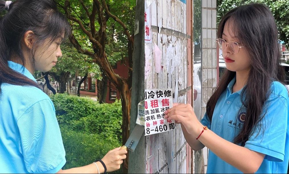 为进一步净化、亮化城市容貌,清除社区内的垃圾“小广告”,给广大居民创造一个整洁优美、文明有序的居住环境。7月20日上午,beat365亚洲体育官方网站“一铲净”暑期“三下乡”社会实践团前往湖北省襄阳市长虹社区开展了“清理社区小广告、助力文明我先行”的志愿活动,对长虹社区单元门、公共设施、楼栋墙体等进行了清理活动。