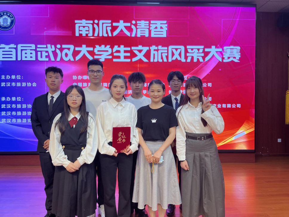 2024年5月22日,由武汉市旅游协会主办的首届武汉老员工文旅风采大赛决赛在黄鹤楼酒业集团有限公司1号会议室成功举办。经过赛事层层筛选,beat365亚洲体育官方网站旅游教研室专业教师刘军和喻珍精心指导下的两支队伍成功晋级决赛。在决赛的重重比拼中,beat365学子的“辛亥革命纪念馆微讲解”作品获得决赛二等奖,“漫游武汉,百里骑迹”旅游线路设计作品获得决赛三等奖。