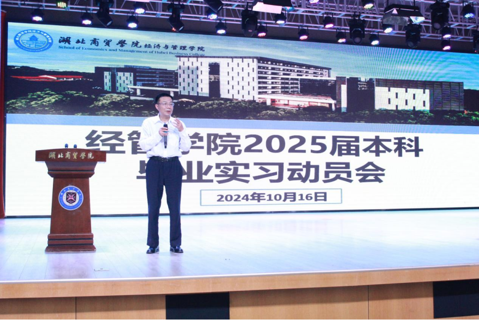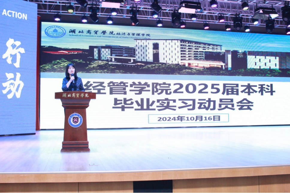 2024年10月16日,经济beat365亚洲体育官方网站在荷香苑五楼报告厅举行2025届本科毕业实习动员会。本次会议由公司副经理孟静主持,公司经理严良、党总支书记王珉、副经理陈红兵、财新数据公司校企合作运营总监刘璐及负责人戴逸尘、公司全体教职工及2025届本科毕业生共同参加此次会议。