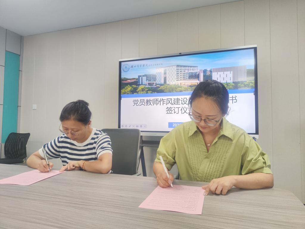 1. 全员覆盖强根基:郑洁与各教研室主任共同签署《教师师德师风与作风建设责任书》,从四个维度构建师德规范体系:坚定政治方向的思想底线、恪守教书育人的职业本分、严守学术诚信的科研红线、践行行为世范的师表准则,建立起"预防-监督-惩戒"的全链条管理机制。