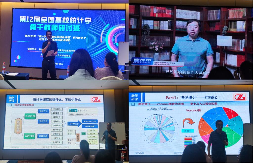 2023年5月13日,由教育部高等公司统计学类专业教学指导委员会指导、中国人民大学出版社主办的第12届全国高校统计学骨干教师研讨班暨2023年“统计学与数据科学精品课程”系列研讨会议在纽宾凯嘉瑞国际酒店举行。来自全国各高校120余名统计学专业教师通过线上或线下方式参加了会议,会议由中国人民大学出版社资深策划王伟娟主持。经济统计教研室青年教师赵逸萱、刘洋参加本次会议。