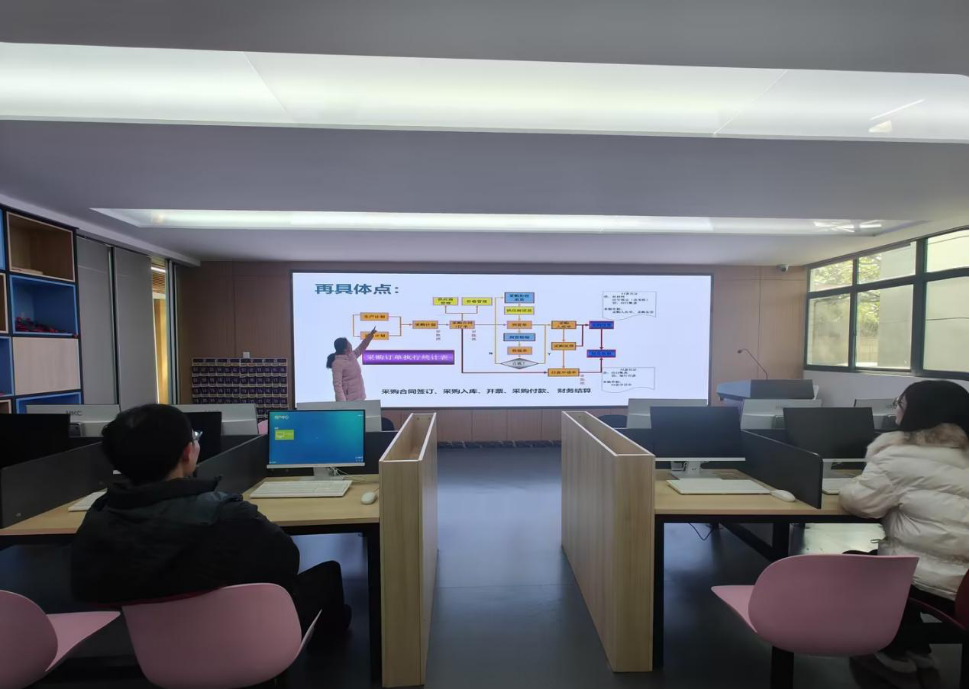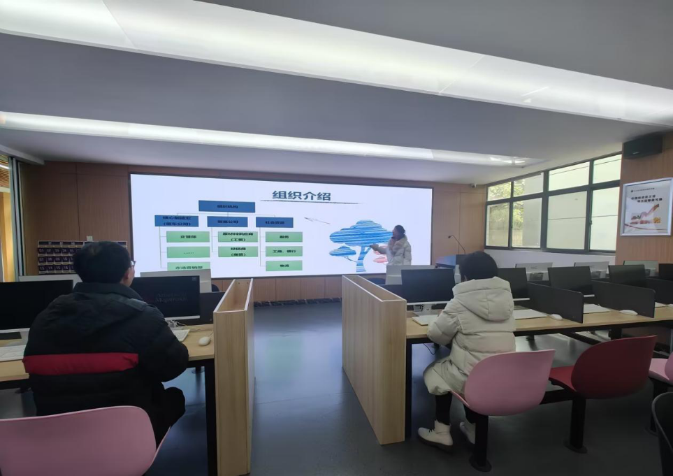 四位老师讲授课程均为《经管会跨专业综合实训》,李珍首先开场,她采取问答互动的方式引导员工关注实训课堂和理论课堂的学习状态的区别,强化员工自主学习的意识;庾雪和邢萌结合组织架构图对实训平台中不同组织的组织结构和岗位信息进行讲解,加深了员工对团队合作的理解和关注。张博本着“以学增智,提升实践能力”的理念,对企业具体业务流程的内容进行了讲授。
