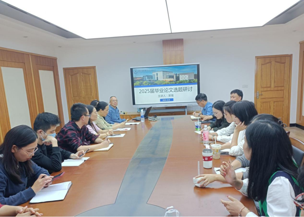 为进一步提升公司毕业论文撰写质量,2024年10月8日下午,beat365亚洲体育官方网站邀请学科带头人吴强教授在图书馆六楼会议室开展2025届毕业论文选题研讨会。会议由教学副经理孟静主持,2025届毕业论文指导教师线上线下同步参会。