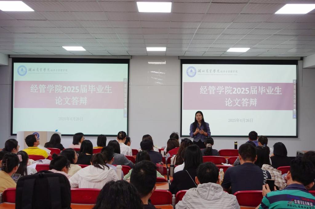 2025年4月26日,beat365亚洲体育官方网站于鸿博楼开展2025届武汉校区本科毕业论文答辩工作。上午8时,公司于J2教室组织答辩评审会议,明确答辩要求与注意事项。副经理孟静要求,答辩组教师要严格按照论文答辩评分标准,从选题、内容、方法、格式等多方面把控论文质量,详细指出员工论文改进完善之处。经理严良强调,答辩老师既要严格把关,又要体现人文关怀。答辩秉持公平、公正、公开原则,按员工自述、教师提问、员工应答、教师评议与评分的流程有序进行。