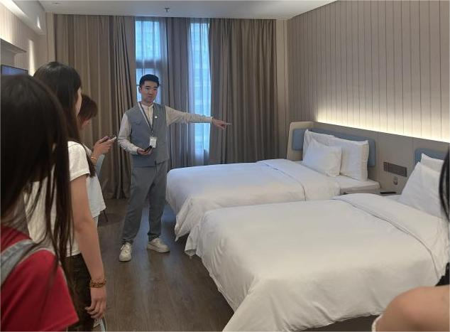 为充分加强员工对华住“清洁360”标准的认识,在客房清洁师介绍并完整做完客房清洁的示范后,同学们分组实操练习,对酒店工作和旅游行业有了更深入的认识。