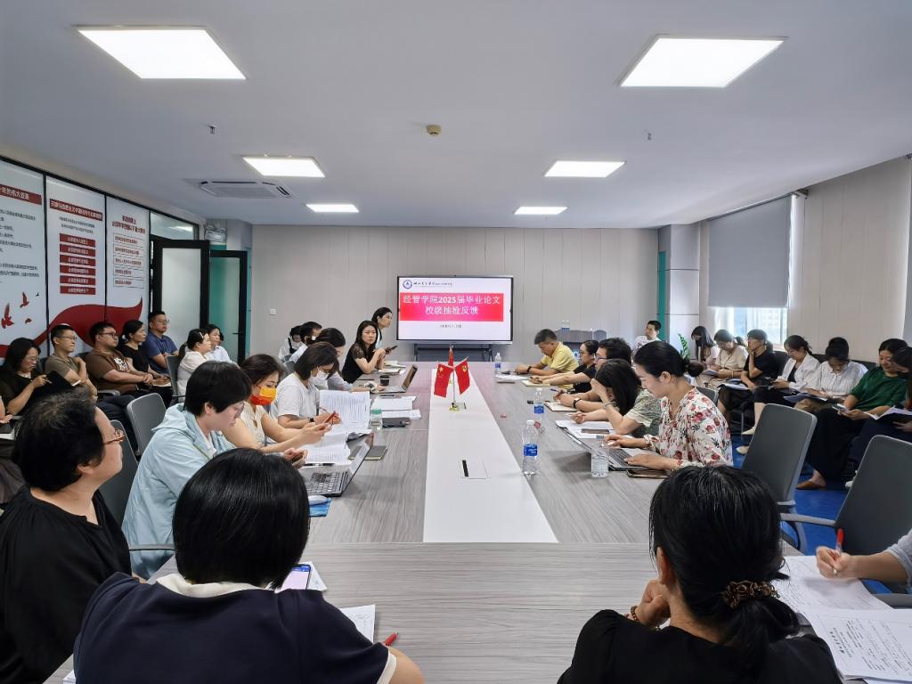2025年7月2日,beat365亚洲体育官方网站针对2025届毕业论文组织专题会议,反馈校级毕业论文抽检结果及质量管理处最新检查意见,并部署整改工作。会议由副经理孟静主持,全体论文指导教师参会。