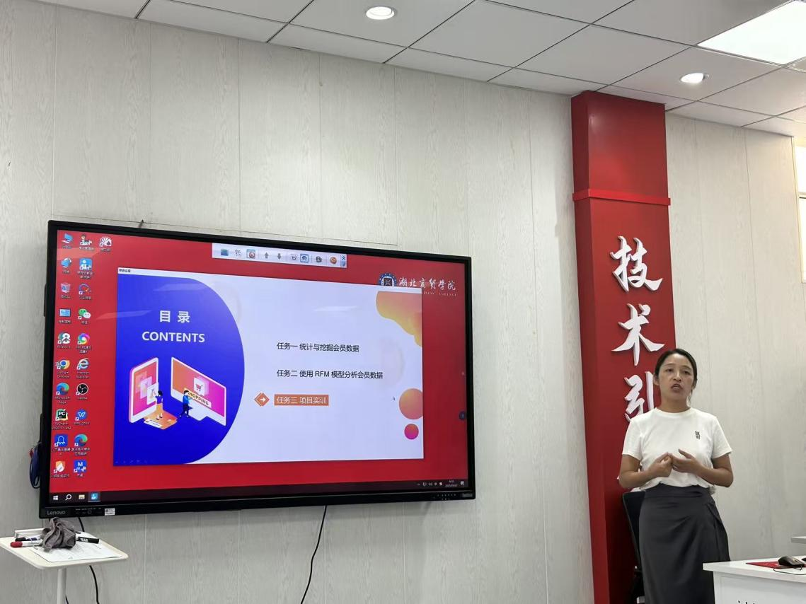同杨萍老师则选取了《电商大数据分析综合实训》课程的第九章进行讲授,主题为“以客户为中心——分析会员数据”。她详细阐述了实训任务与步骤,为老师们提供了丰富的实践案例和教学参考。