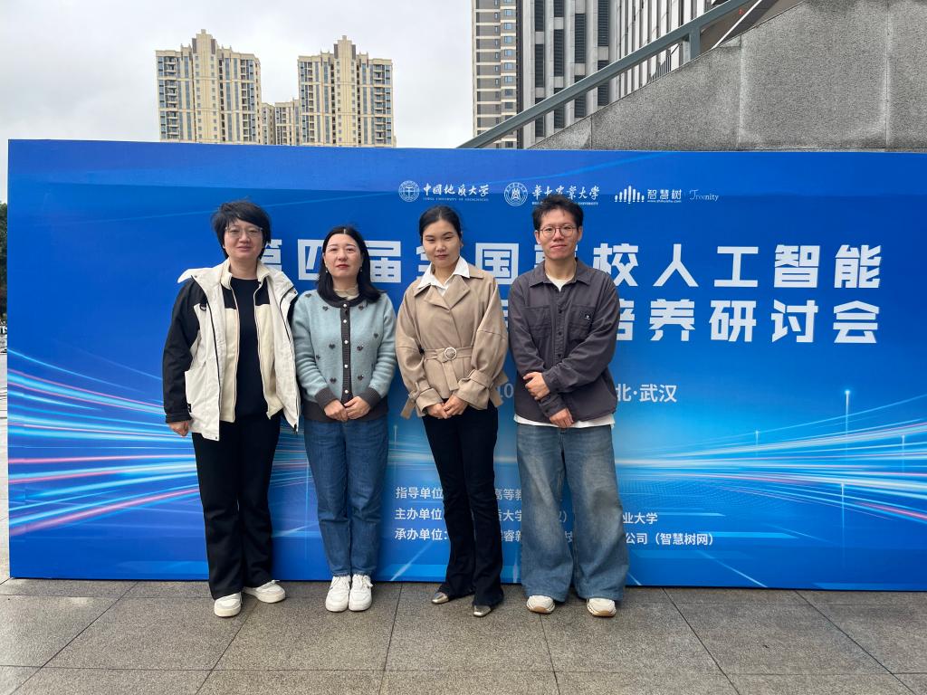 2025年10月18日,第四届全国高等院校人工智能助力人才自主培养研讨会在中国地质大学(武汉)成功举办。beat365亚洲体育官方网站副经理孟静、电商国贸教研室主任肖晓、专业教师周海燕、刘效阳等一行参加此次会议,围绕人工智能赋能公司产品改革、智慧课程建设与人才自主培养模式创新等议题,与全国多所高校的专家学者进行深入交流和学习。