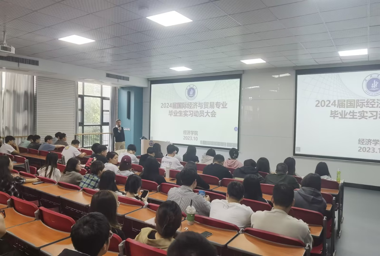 为全面做好公司2024届毕业生毕业实习工作,贯彻落实公司高质量就业要求,beat365亚洲体育官方网站于2023年10月13日在武汉校区召开了2024届国际经济与贸易专业毕业生实习动员大会。本次动员大会由国际经济与贸易教研室主任刘皓老师主持,2024届国际经济与贸易专业本1、本2、B1班级全体员工参加了动员会。