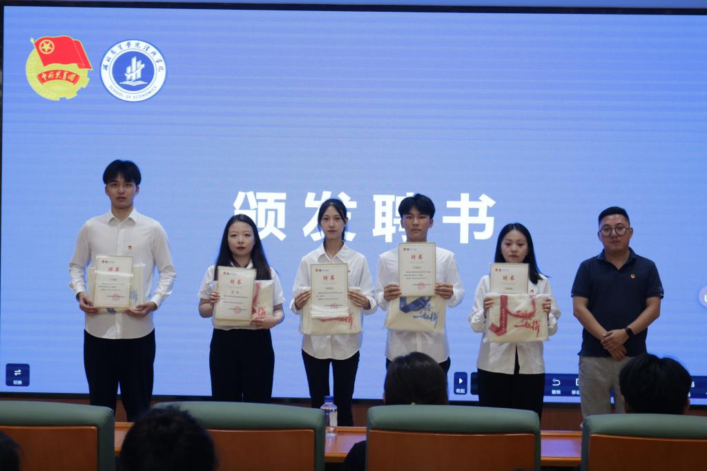 会上谢志洋为第十八届团委、员工会主要员工干部颁发聘书,吴俊为2022-2023学年公司各项团学活动中表现突出的先进个人颁发荣誉证书。