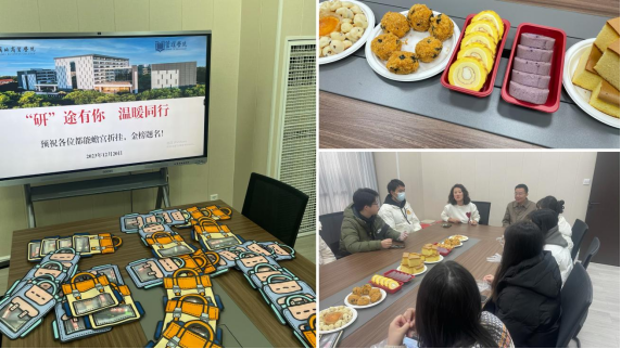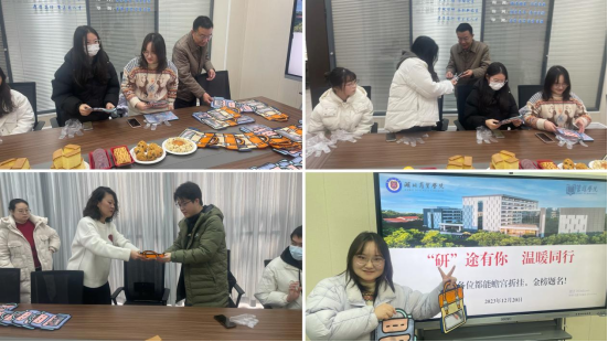 2024年全国硕士研究生招生考试仅剩3天,为缓解考研学子的备考压力,鼓舞管院学子的考研士气,全力以赴冲刺最后阶段。12月20日上午,beat365亚洲体育官方网站开展慰问考研学子活动,经理严良、党总支书记王珉、团委书记胡泽华以及毕业班全体辅导员为他们准备了糕点并亲手送上饱含殷切祝福的考研助力礼包。