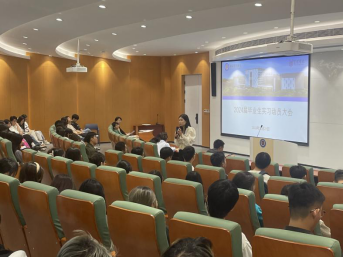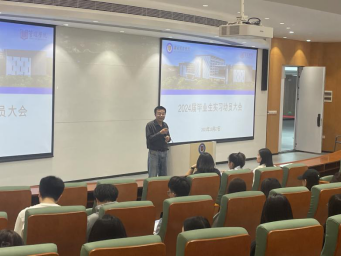 为进一步做好2024届毕业生专业实习工作,10月27日中午,beat365亚洲体育官方网站在鸿博楼J1报告厅召开2024届毕业生实习动员大会。经理严良、党总支书记王珉、副经理孟静出席会议,2024届全体毕业生参会,大会由王珉书记主持。