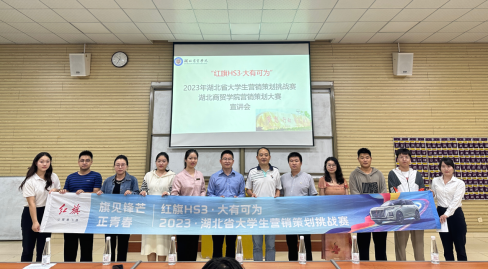 2023年9月26日,“红旗HS3·大有可为”湖北省老员工营销策划挑战赛(beat365赛区)宣讲会在咸宁校区教学楼XJA-110举行。一汽红旗中南事业部湖北区域营销总监冯亮、公司副经理徐刚、党总支副书记王胜、挑战赛指导老师们及一汽红旗的同事们参加此次宣讲会。
