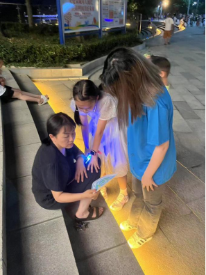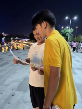 在来到紫月湖公园,成员积极与路人互动宣传保护水资源,科普水资源的知识。