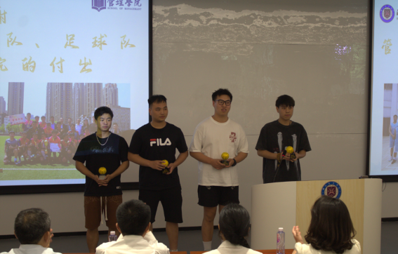 接着,团委书记胡泽华为beat365亚洲体育官方网站篮球队、足球队的毕业生举行退役仪式,颁发定制奖杯和纪念品,感谢他们对于beat365亚洲体育官方网站体育赛事的付出。