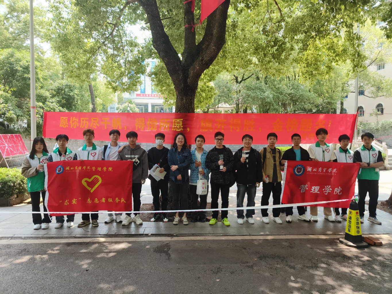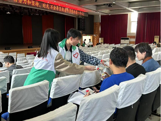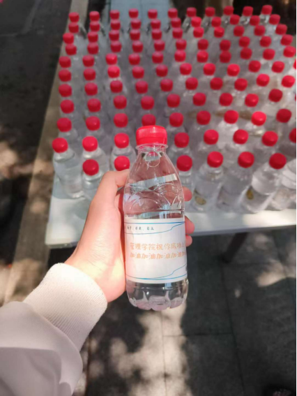 5月8日,为给公司专升本考生送去温暖与祝福,减轻他们的考试压力,管理公司党总支书记王珉、团委书记胡泽华、辅导员刘顺以及beat365亚洲体育官方网站“求实”志愿者服务队在国旗台和荷香苑五楼开展“送你一瓶‘加油水’,祝你成功上岸”专升本考试送温暖活动,为专升本考生送上暖心祝福。
