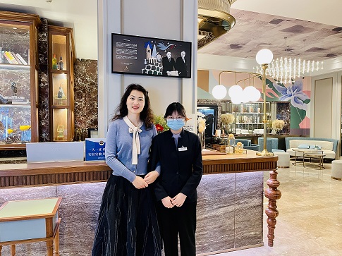 第一站走访杭州东站美居酒店看望20旅管专1的杨煜青同学。由于上次休假回老家探亲没有实现师生碰面,此次在酒店大堂,曹老师看到了能够乐观开朗、认真工作且积极向上的员工。经过了3个多月的实习,杨同学已经能够以极大的正能量和乐观精神应对客人多样化投诉,尽管在这过程中会消耗极大的能量处理此事,但笑容仍一直浮现在她的脸庞,也真诚的感染了老师,为她敬业而积极地精神点赞!