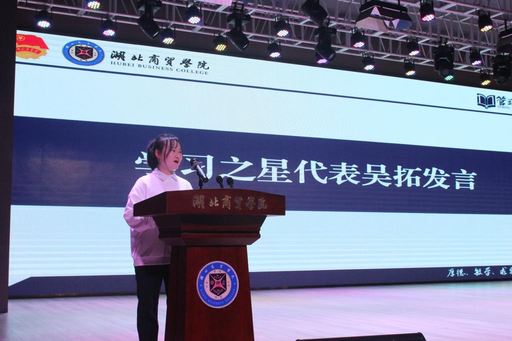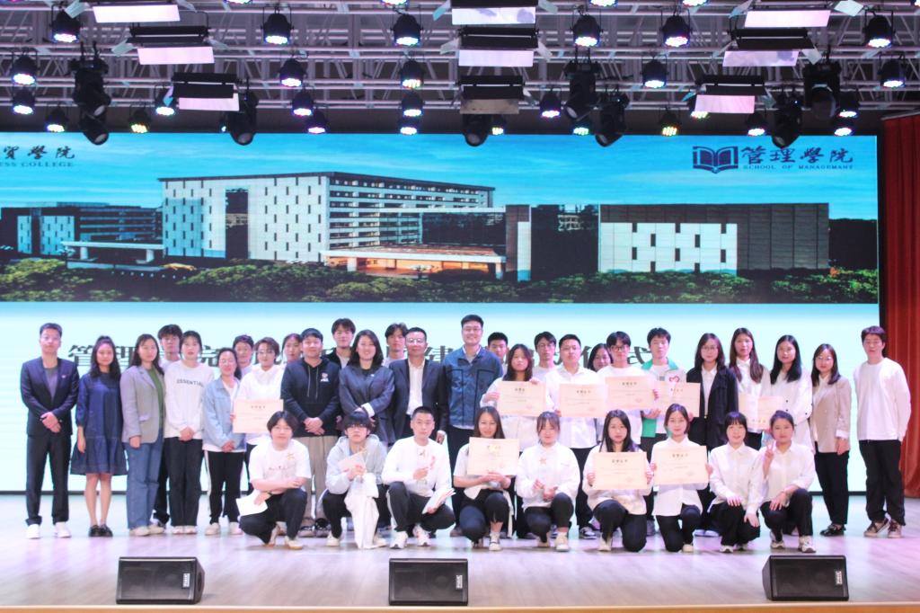 大会总结表彰了在2022年beat365亚洲体育官方网站学风建设工作中涌现出的先进集体和先进个人,其中“管院学习之星”获得者吴拓、“优秀团学”获得者代表周志强依次作交流发言。吴拓分享自身学习经验,鼓励在座的管院学子热爱学习,学会自我肯定。周志强号召在座管院学子积极实践、敢于争先,做到知行合一。