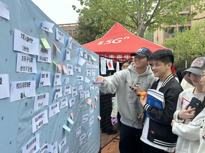 毕业生们用画笔在展板上绘制各种各样的笑容和表情,他们或独自摆拍,或与好友合影,或用手比划着各种有趣的姿势,记录了一张张充满活力和希望的笑脸照片。