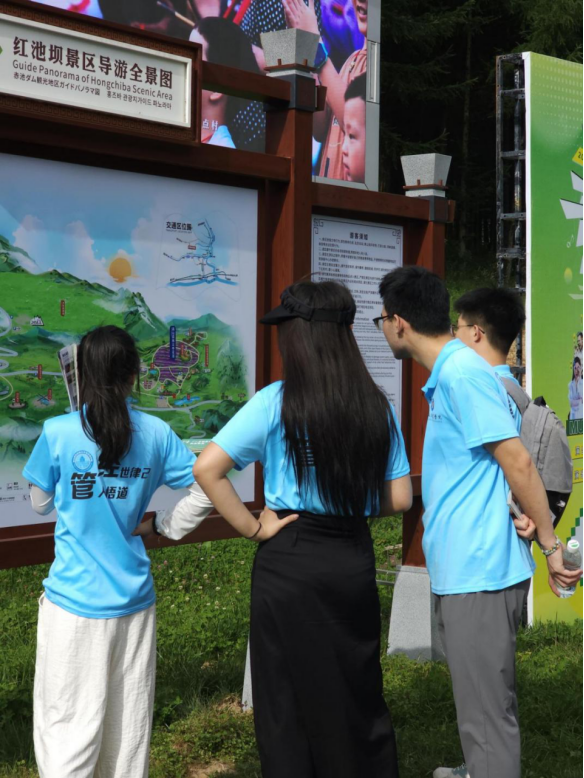 7月22日,实践团从红池坝开启了追溯之旅,这片被誉为“重庆的香格里拉”的自然保护区,以其丰富的生物多样性和壮丽的自然风光吸引了无数游客。实践团前往红池坝云中花海、扎鹿营、春申湖,感受自然的壮丽与生命的奇妙,激发了对环境保护的深刻认识。习近平总书记指出:“旅游是修身养性之道,中华民族自古就把旅游和读书结合在一起,崇尚‘读万卷书,行万里路’。”在青葱绿岭的漫步中实践团员们开始思考人类活动对自然环境的影响,讨论了可持续发展的重要性,以及每个人在保护生态环境中所应承担的责任。当地住民向实践团介绍了红池坝近几年的变化与发展、当地政府与人民对于高山草场的保护,依托良好环境,大力发展旅游业,正是回应了习近平总书记“绿水青山就是金山银山”的号召与期盼。