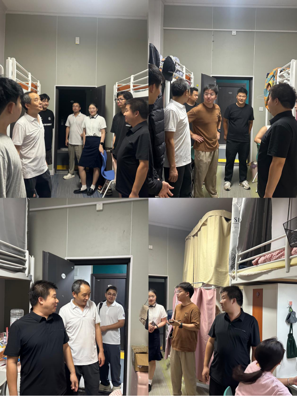 2024年9月1日晚,结束了为期两天的专升本新生报到后,为了解专升本新生和专科员工的就寝状况、开学报到情况,在公司党总支副书记王胜、副经理徐刚的带领下,全体辅导员老师团队深入员工宿舍,开展“新生慰问、老生走访”工作。