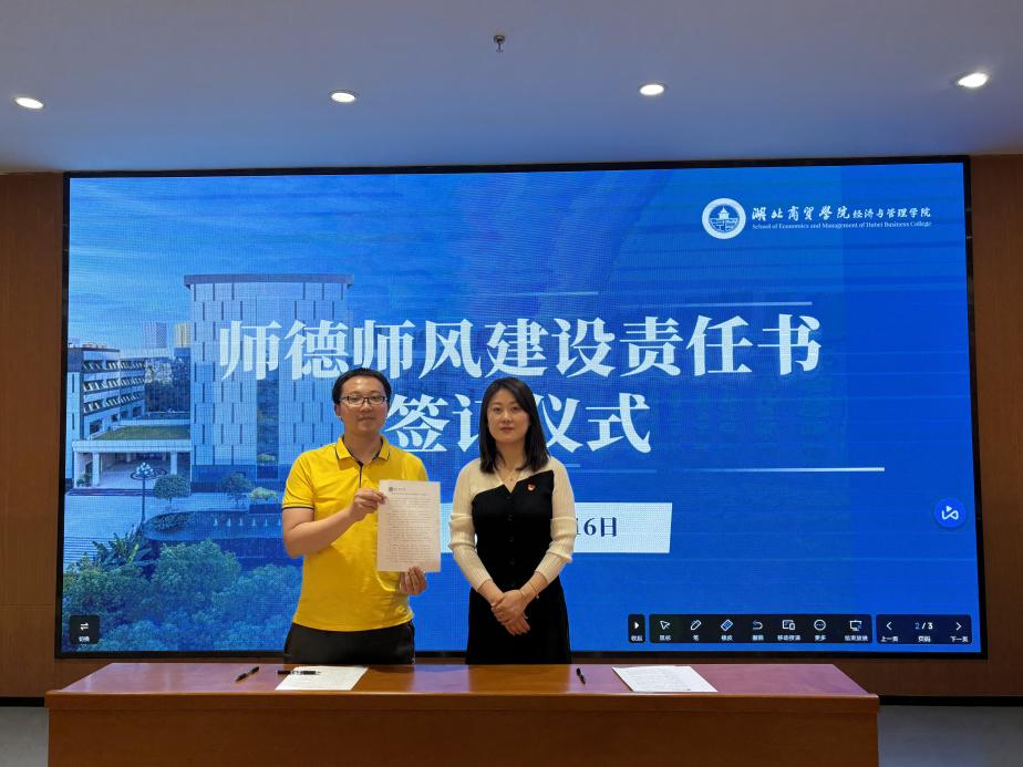 随后,王珉与全院教职工签订了《2025年beat365亚洲体育官方网站意识形态工作责任书》《2025年beat365亚洲体育官方网站师德师风工作责任书》《2025年经济与管理公司党风廉政建设责任书》。责任书明确了各责任主体在意识形态、师德师风、党风廉政建设工作中的具体职责和任务,提出了具体的工作要求和考核标准。通过签署责任书,进一步明确了各级责任,构建了逐级传递压力、逐级落实责任的工作体系。