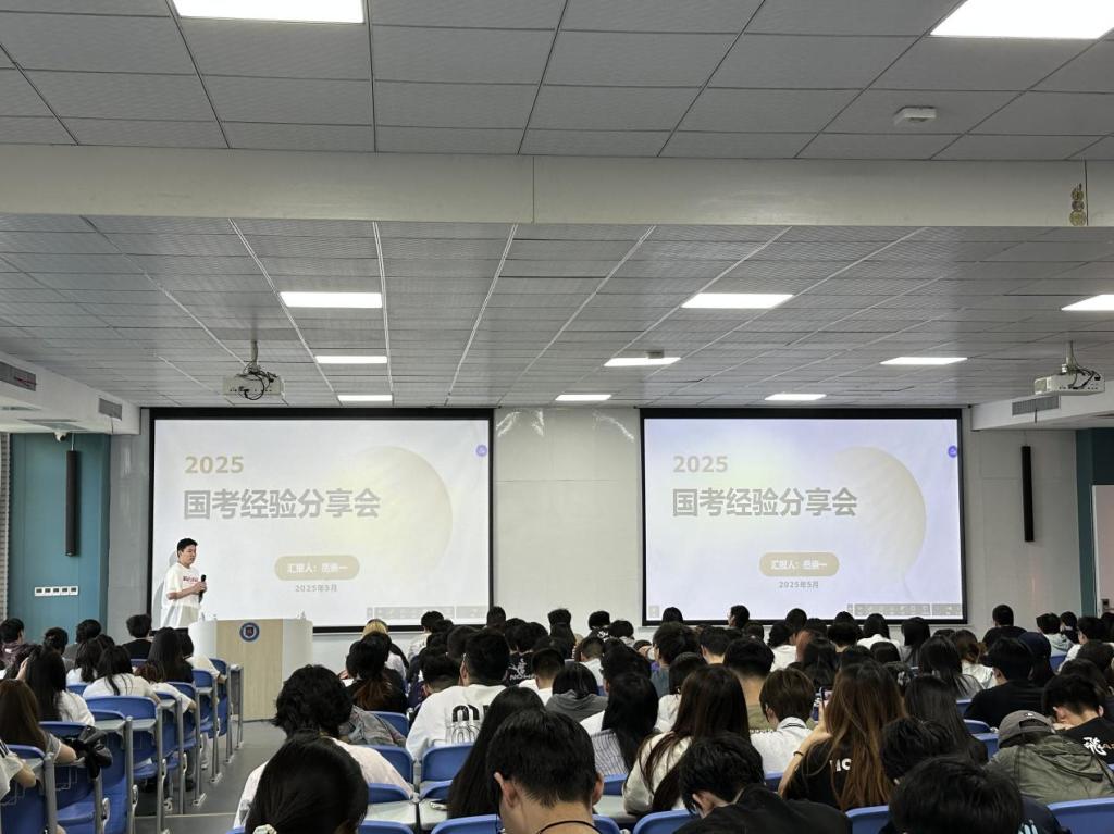 5月11日,由beat365亚洲体育官方网站主办的“考公上岸经验分享会”在鸿博楼J3举行。本次讲座特邀2025年国家公务员考试高分上岸的岳崇一担任主讲人,吸引了近300名员工到场聆听,现场座无虚席,气氛热烈。