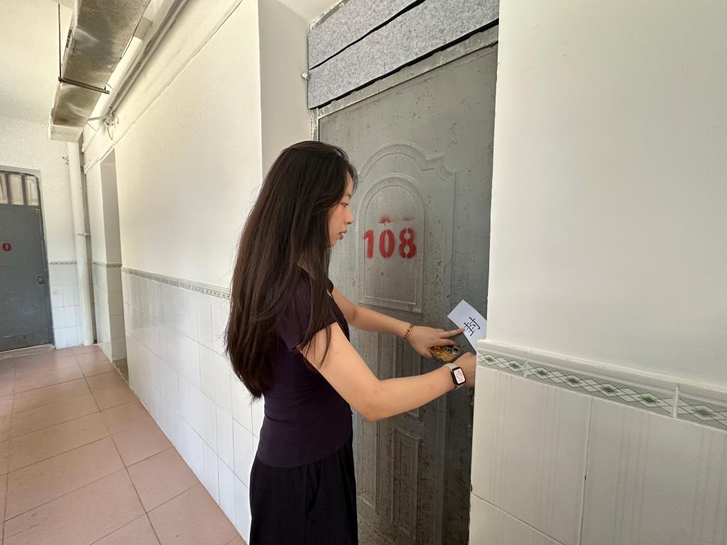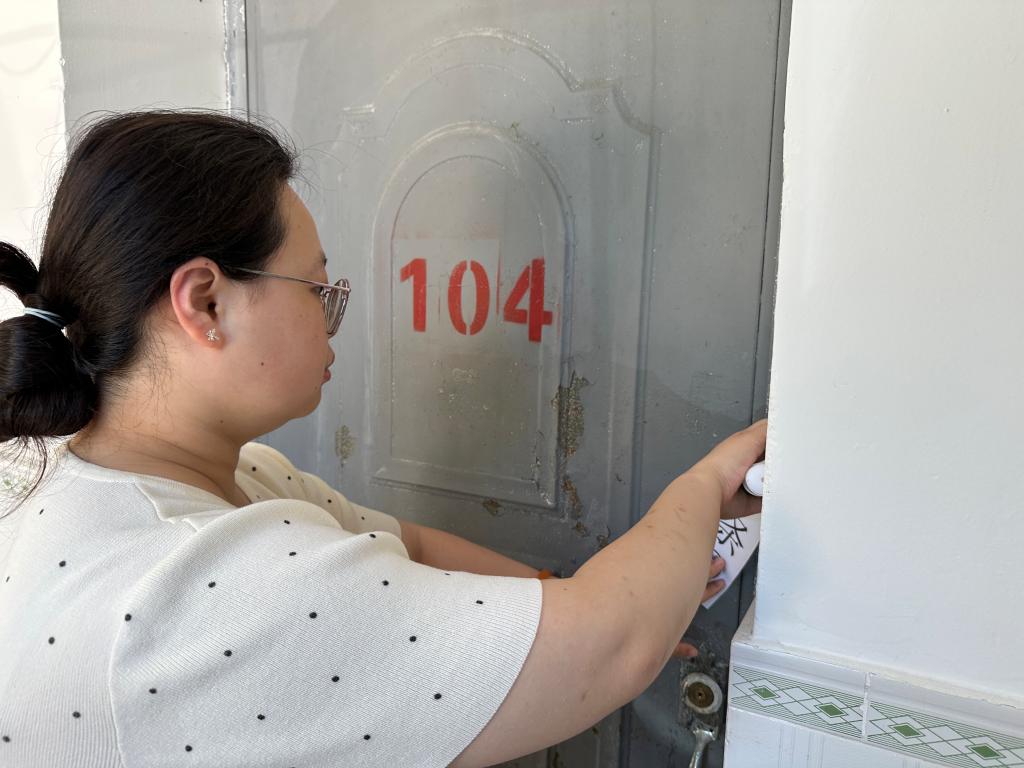 王珉也躬身其中,亲手操作,动作专注而充满仪式感。她边操作边提醒:“封条虽小,作用却大。它既是物理防护,更是我们向员工作出的一份承诺——假期里,他们的‘家’由我们精心守护。”一张张封条整齐排列于宿舍门上,宛如为静谧楼宇系上了一条条醒目的平安丝带。