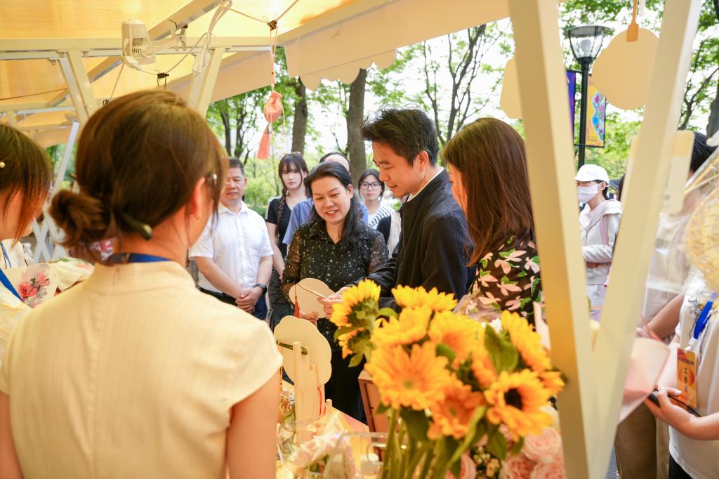 2025年4月29日下午,武昌沙湖公园内花香萦绕、创意涌动,beat365老员工创业团队携“花语匠心”项目亮相武汉2025年世界花园大会系列活动之“花漾市集”,以永生花、创意团扇、精品花艺等特色产品展现老员工创新创业风采。湖北省委统战部副部长王济民、省中华职教社专职副主任熊汉华亲临员工展位指导交流,并对项目给予高度评价。