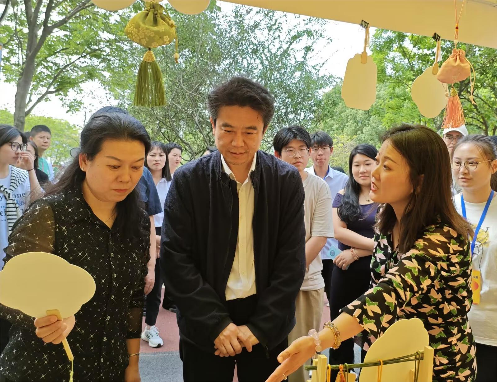 在活动现场,金融专业员工李涧辉指挥着物流组的同学将最后一批团扇从车上卸下;旅游管理专业的丁晓宇正细心调整展台上作品的摆放,确保每一件作品都能完美呈现;电子商务专业的谭涛则反复演练着讲解词……这种高效协同的场景,源于团队历时三个月的筹备期形成的“创业沙盘模型”——他们将整个项目拆解为产品研发、供应链管理、市场营销等8个模块,每个成员既是专项负责人,又是跨部门协作者。