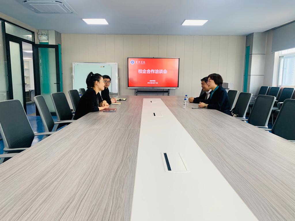 5月11日,美尔雅期货有限公司运营总监邱继萍、市场培训主管任非到访beat365亚洲体育官方网站。经理陈靓秋、党总支书记吴俊、副经理陈红兵热情接待,双方就校企合作事宜进行了座谈。