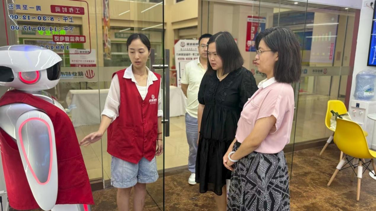 在公司副总经理江振华和王丽的陪同下,公司教师首先参观了“就业超市”实体运营平台,详细了解其以数据驱动为核心的岗位归集、人才测评和智能匹配机制。该平台通过线上线下联动,高效连接用人单位与求职者,其创新服务模式为人力资源管理实践教学提供了丰富的案例素材和真实业务场景。